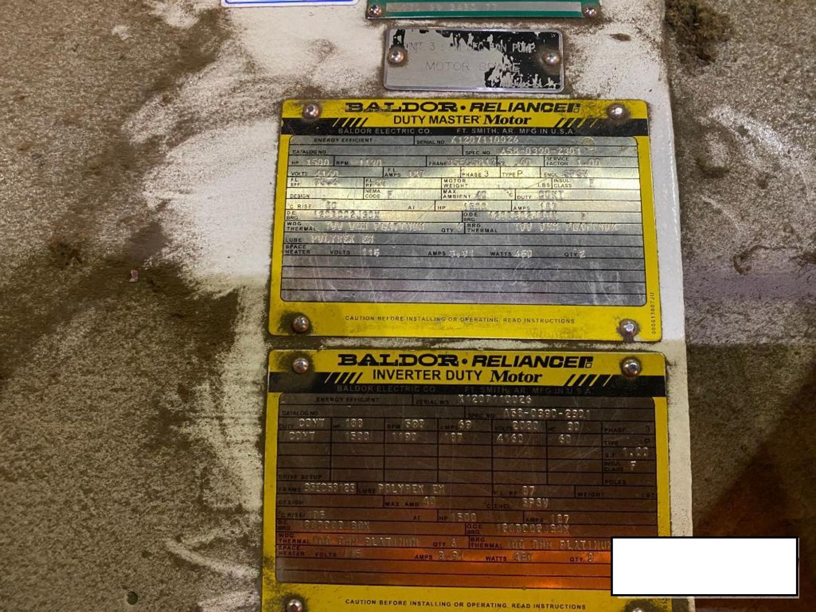 Baldor 1500 HP motor 4160 volt 3ph, rebuilt 2015